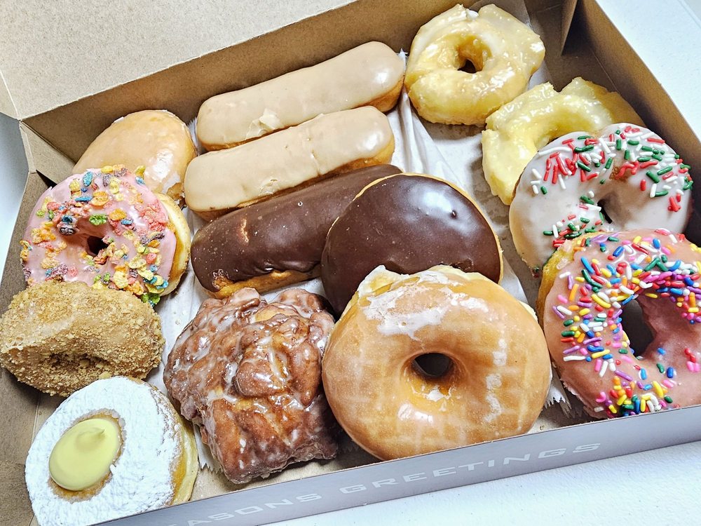 But the delights don't stop there! Pair your sweet treat with a refreshing beverage, such as a sweet NESQUICK or a zesty BOTTLED ORANGE JUICE. The vibrant atmosphere, complemented by a friendly team, enhances the experience as you savor each delightful bite. As one patron noted, the 14 donut special is a superb deal, perfect for gatherings.